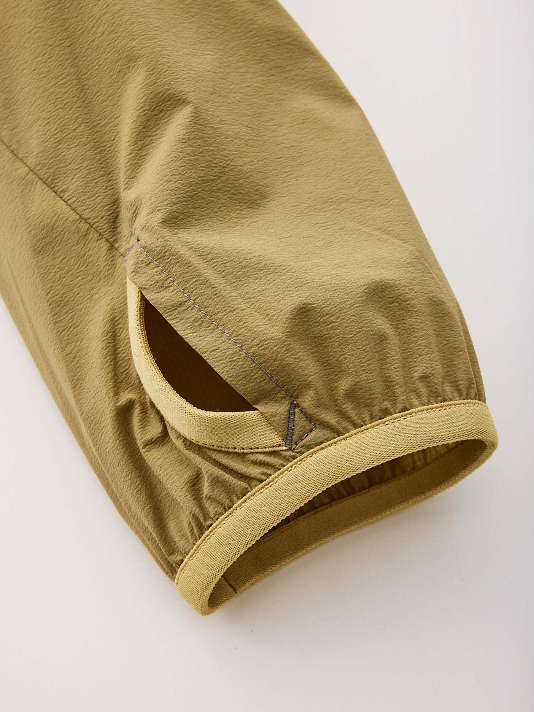 重量はMサイズでわずか100g。右腰のジッパー付きポケットに収納できるパッカブル仕様なので、どんな時もためらわずに持ち歩けます。