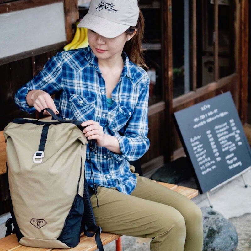 バディ16は逆台形デザインによる広いジッパー開口部と、ダブルハンドルにより荷物の出し入れを容易にしました。ガバッと広げてパッキングできるのが特徴です。
