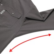 アームホールを大きく取り、腕上げ時の運動量を脇(鎌底)部分で十分に確保しています。
