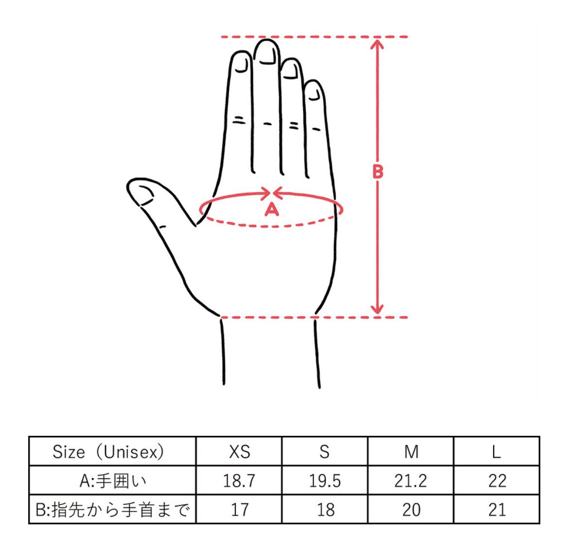 ※「B:指先から手首まで」の数値を優先されることをお勧めいたします。